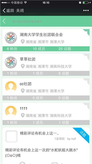 “活躍社團(tuán)”頁面
