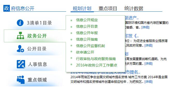 湘潭市雨湖區(qū)政府官方網(wǎng)站欄目設(shè)置如下表: