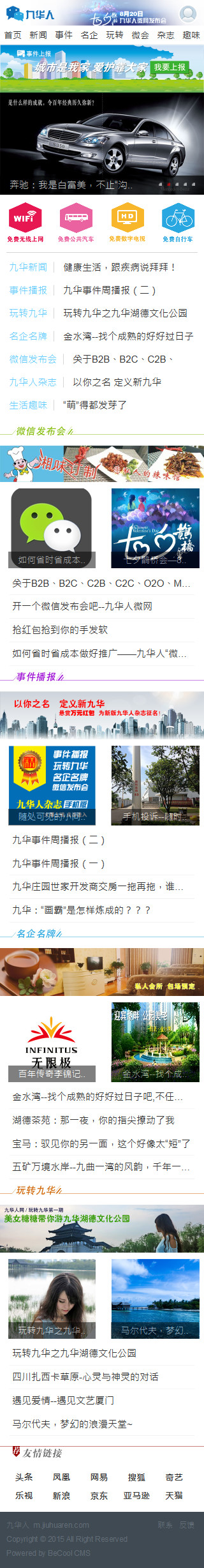 “九華人”微信公眾號(hào)和微網(wǎng)站是由湘潭市貝一科技科技有限公司、湖南云擎科技及智慧九華綜合管理中心三方共同設(shè)計(jì)開發(fā),此項(xiàng)目集合了新聞資訊類欄目和智慧九華的“事件上報(bào)”系統(tǒng),并將移動(dòng)網(wǎng)站與微信進(jìn)行了整合。