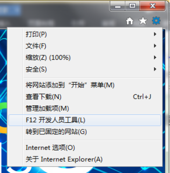 ”,選擇“F12開發(fā)人員工具”,或者打開IE后直接點擊鍵盤的“F12”。