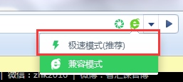 若是360瀏覽器或QQ瀏覽器類似這種帶有IE內(nèi)核和谷歌內(nèi)核的,請按照下圖操作切換到極速模式;因為兼容模式使用的是IE7文檔標準,很多網(wǎng)站會不支持。