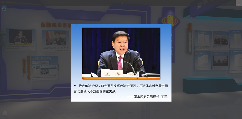 為深入貫徹“誰執(zhí)法誰普法”新要求,XXX國稅局創(chuàng)新性打造出法治稅務(wù)示范基地數(shù)字化展廳。展廳分為“正廳”、“回顧廳”、“探索廳”、“實踐廳”和“創(chuàng)新廳”五大區(qū)域,運用3D全景技術(shù),全方位展示了XXX國稅依法治稅的探索歷程、實踐成果與發(fā)展方向,為全體干部提供了一個集趣味性與實用性為一體的學(xué)法用法平臺,也讓納稅人在720度全景中深入了解依法治稅歷程,強化法治意識。