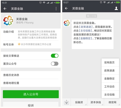 “芙蓉金融”服務(wù)號介紹及關(guān)注界面